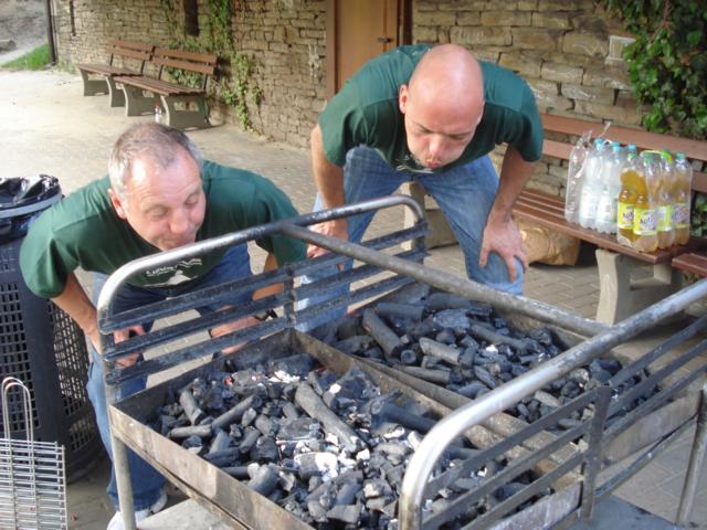Englische, holländische und deutsche Jungs vereint am Lagerfeuer.