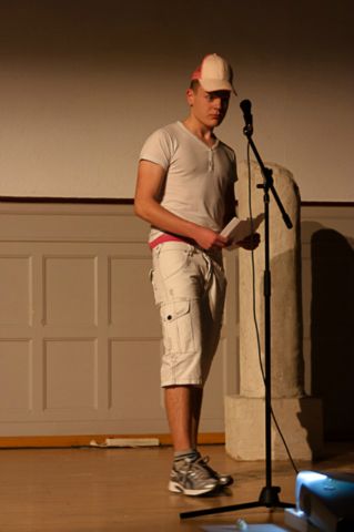 Die beiden Literaturkurse der Stufe 12 haben sich ein ganzes Halbjahr auf diesen Abend vorbereitet: Zuerst wurde natürlich erarbeitet, was überhaupt ein Poetry Slam ist, dann wurden zahlreiche Texte geschrieben und etliche Clips gedreht.Worum geht es beim Poetry Slam überhaupt?