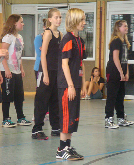 Hinter D! verbirgt sich Detlef D. Soost, der bekannte Tanztrainer, der zwar natürlich nicht persönlich anwesend war, aber seine beiden Coaches Caro und Manu bestens instruiert hatte: So cool, wie es sich für Hip-Hopper gehört, übten sie mit unseren 60 Aktiven eine Choreographie ein, die es in sich hatte!