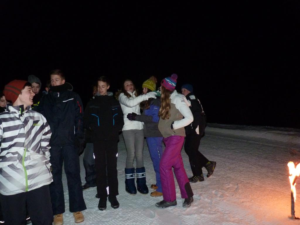 An einem Abend gab es eine Nachtwanderung hoch zur blauen Piste. Im Fackellicht konnte man sich Wettrennen auf den Poporutschern liefern oder den klaren Sternenhimmel bewundern. Zum Abschluss gab es warmen Punsch zum Aufwärmen.